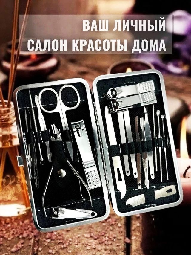 В составе множество необходимых аксессуаров для идеального ухода за ногтями рук и ног, а также для ушей. Благодаря высокому качеству материалов набор одинаково актуален как для домашнего применения, так и для мастеров красоты.